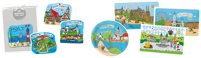 handbemalte Keramik Produkte, Magnete, bedruckte Porzellan Artikel, Gläser, Figuren, Resopal Brettchen, Traumkugeln uvm.